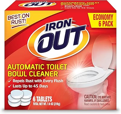 Iron OUT Automatic Toilet Bowl Cleaner Tablets, Helps Remove and Prevent Rust Stains with Every Flush, Lasts up to 45 Days, Made in the USA, 6 Tablets